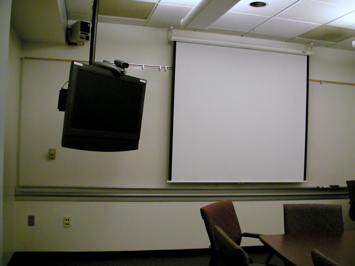 40人程度を収容できるスクリーン付のホール。授業、上映会、講演会等、自由に使える。